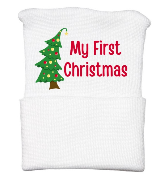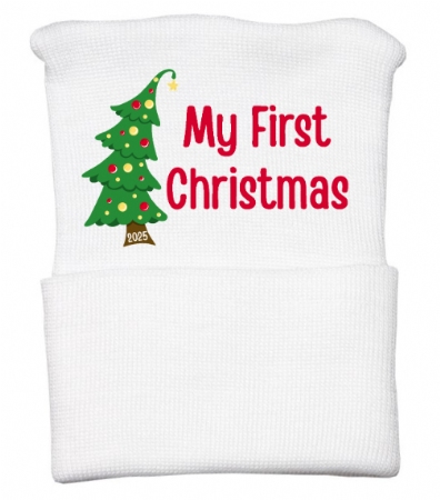 Celebrate baby's first Christmas with our My First Christmas Hat. Soft and gentle, this high-quality cap is designed to keep newborns warm and comfortable while adding a festive touch. This hat features an adorable “My First Christmas” design. For an extra special touch, an option to add the year is available, creating a lasting memory of their very first holiday season. Give families the gift of a memorable and cozy first Christmas with this charming cap!